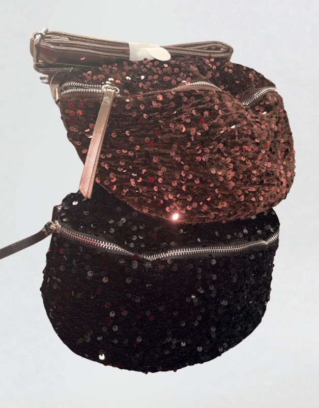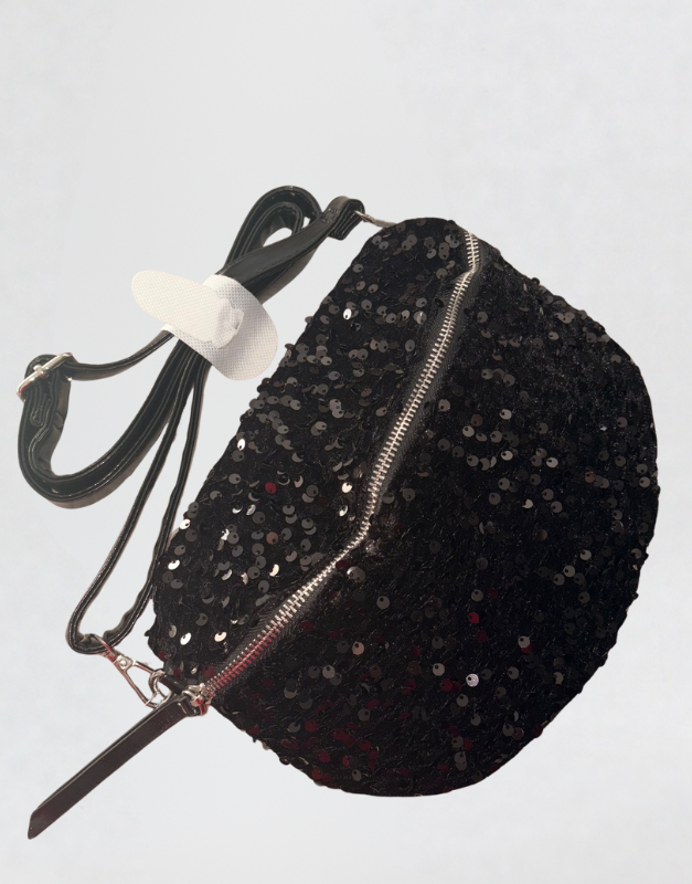 Banane à sequins avec bandoulière réglable. Poche intérieur avec fermeture éclair ainsi que pour la fermeture du sac