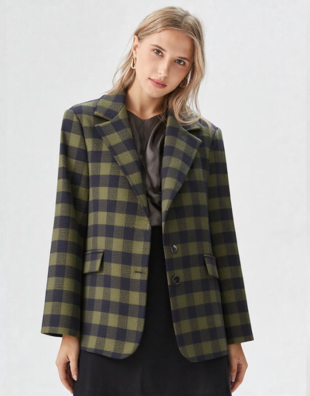 Blazer assez épais à manches longues. Composé de deux boutons de fermeture et deux fausses poches. Doublure intégrée