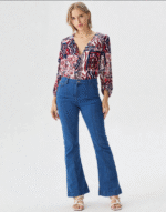 Blouse colorée à motifs variés. Style chemise avec les boutons au centre et sur les manches. Possibilité de l’accrocher pour rendre la manche plus courte