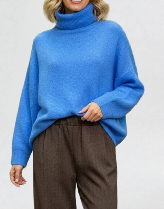 Pull col roulé à manches longues. Coupe ample